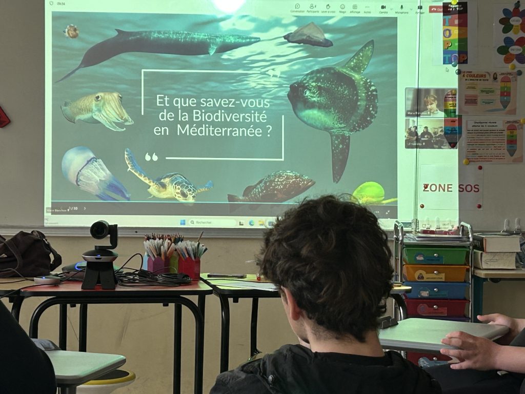 Les élèves ont également participé à une visioconférence avec l’association Mare Vivu,mardi 10 mars basée à Bastia, engagée dans la protection de la mer Méditerranée. Cette rencontre s’inscrivait dans le cadre du programme Plastique à la loupe, qui permet aux élèves d’étudier la présence de microplastiques sur les plages et de mieux comprendre les enjeux de la pollution marine.